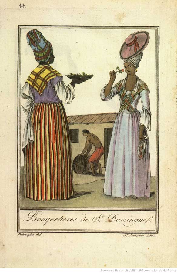 Labrousse (drawing) and Laroque (etching). Bouquetieres de Saint-Domingue, 1796. In Jacques Grasset-Saint-Sauveur’s book, Encyclopédie des voyages (1796) Intaglio (Colour engraving). 24.8cm