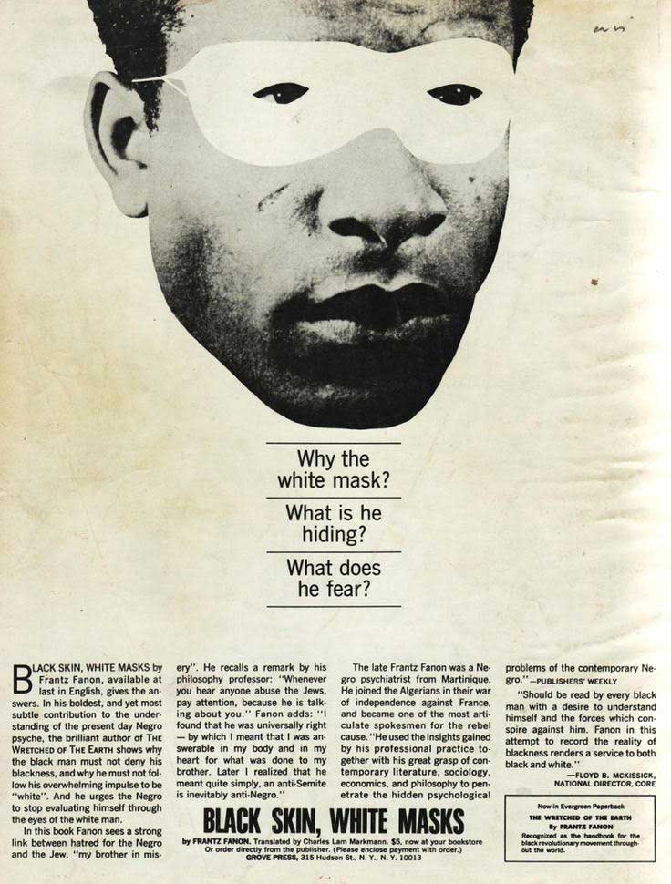 Advertisement for the first English translation of Frantz Fanon, Black Skin, White Masks (Grove Press, 1967).