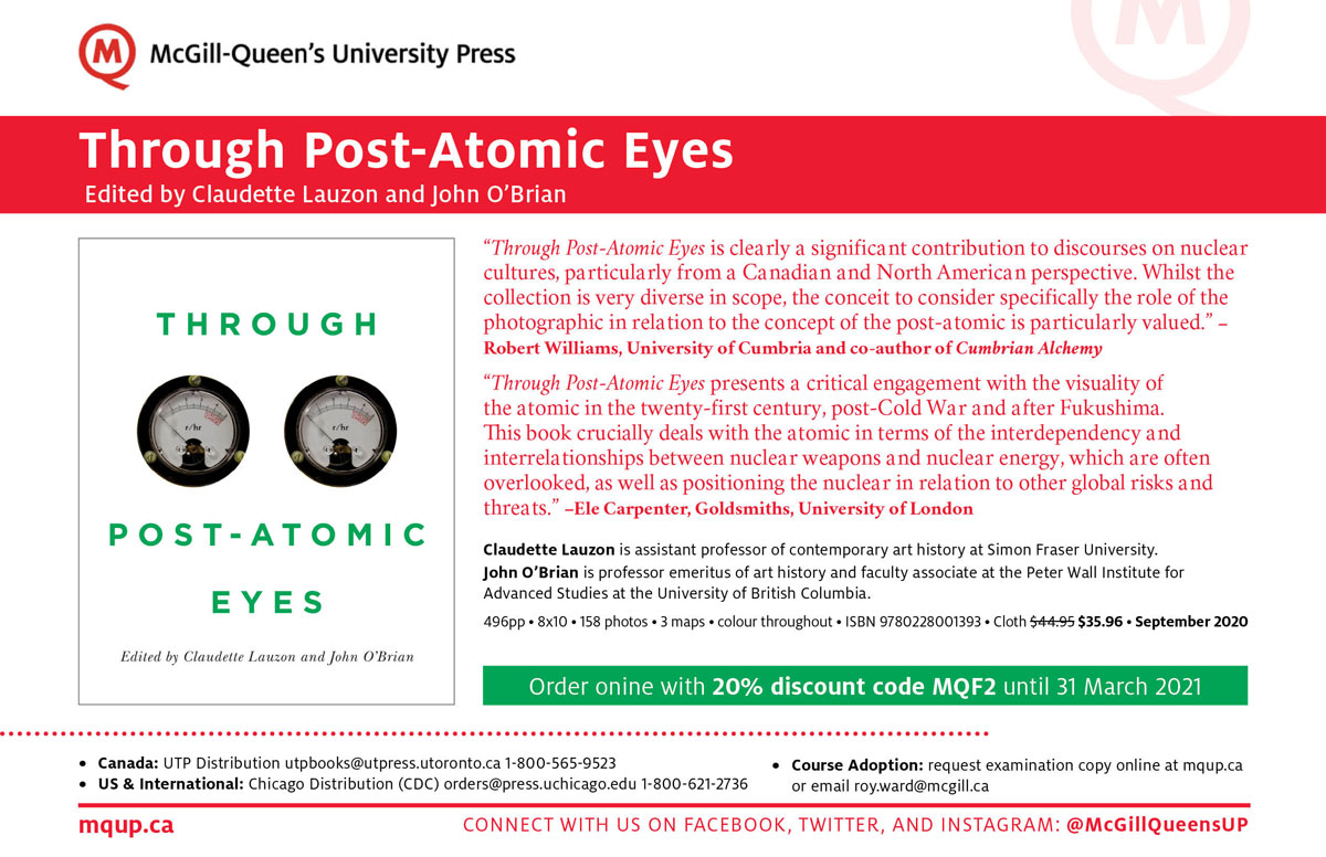 Through Post-Atomic Eyes, edited by Claudette Lauzon and John O’Brian (MQUP, 2020), 20% discount code