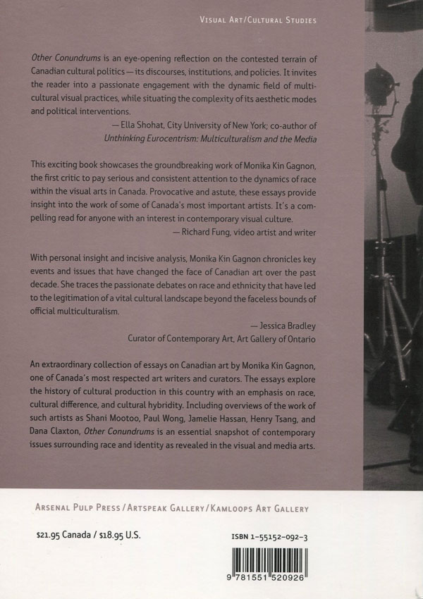 back cover: Other Conundrums: Race, Culture, and Canadian Art, Arsenal Pulp Press, 2000