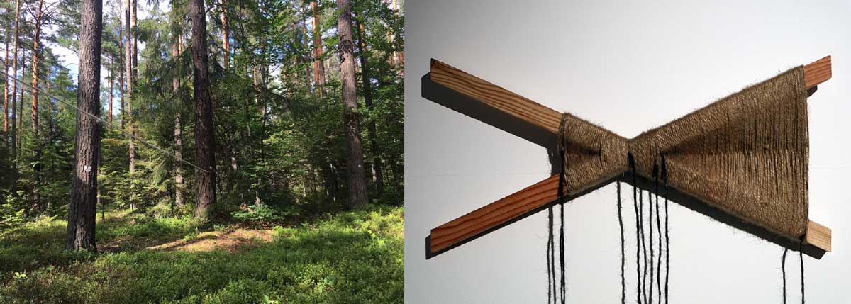 Angela Henderson, witness trees, 2019, linen string and larch.