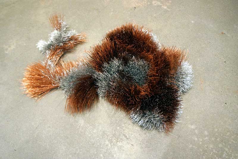 Jay Pahre. Piebald Undercoat, 2020. Aluminum wire, copper plated steel wire, gauze, 21” x 27".