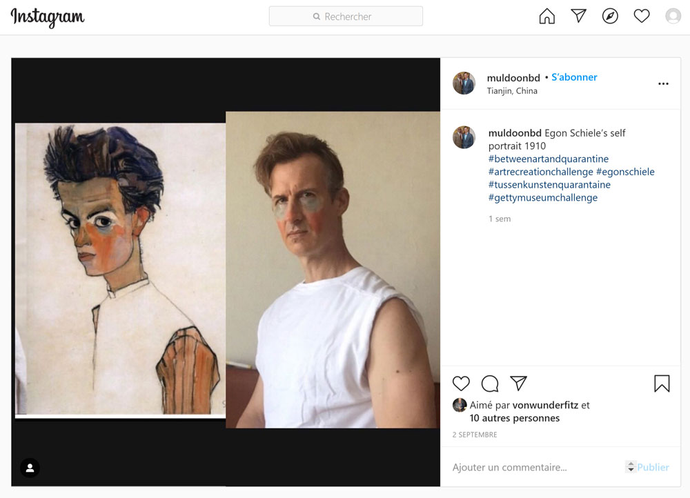 muldoonbd. (Utilisateur Instagram), Egon Schiele’s self portrait 1910. Image numérique - Autoportrait par mise en scène, 2 septembre 2020, Capture d’écran.