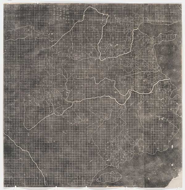 Map of the Tracks of Yu, rubbing from a 1136 stone carving (Xi’an, Stele Forest Museum), 19th century (rubbing), 81 x 78.5 cm, Fine Arts Library, Harvard University, Rubel Collection Accession F-06.