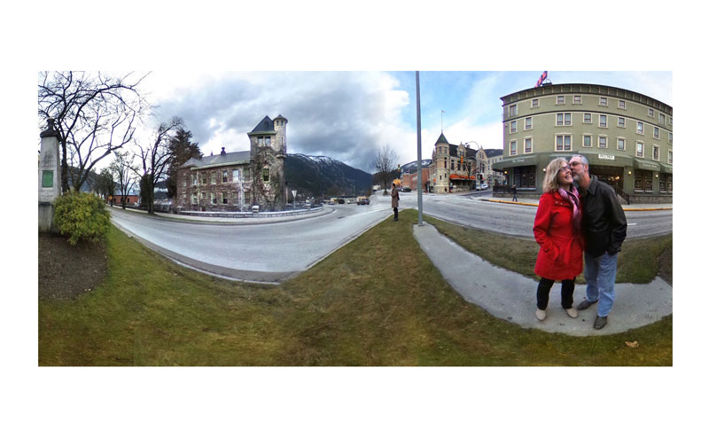 Holly and John Strilaeff by the Courthouse, from the series The Kissing Project, 2017, C-41 print, Collection of Touchstones Museum of Art and History, Nelson, BC, Dimensional Google Street View portrait